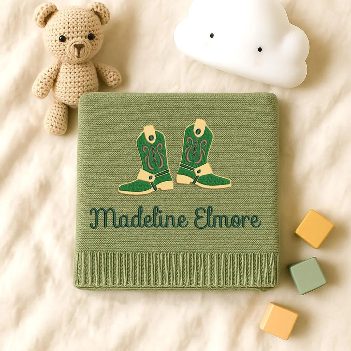 Personalized Baby Blanket with Boots Cowboy, Embroidered name Blanket, Custom Baby Name Blanket, Newborn Blanket, Cowgirl Blanket