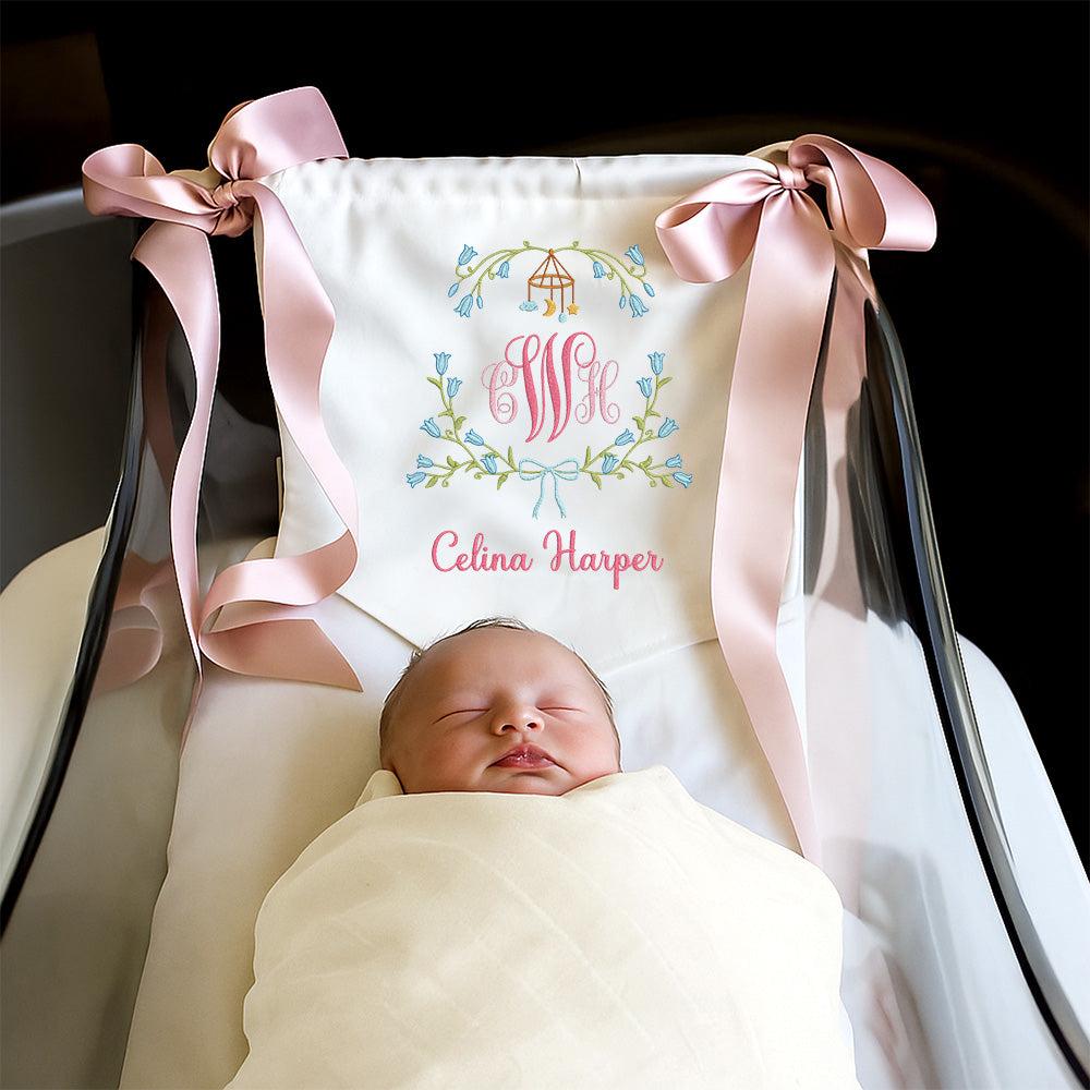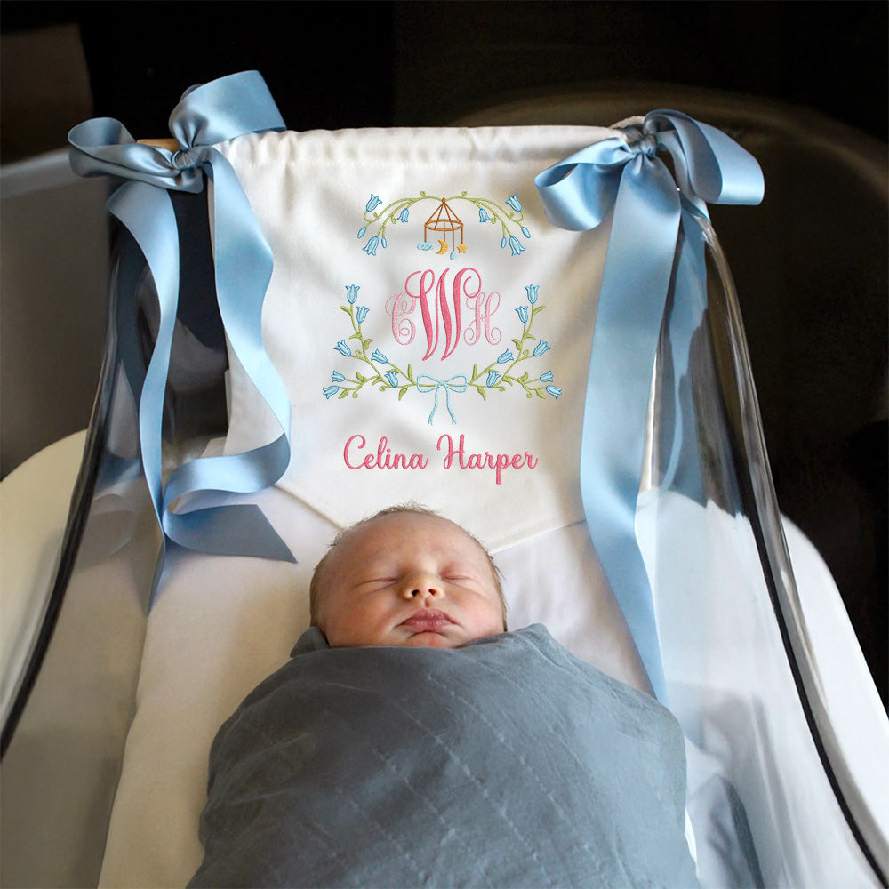 Nursery Mobile Monogram Baby Banner โ Personalized Baby Banner, Newborn Hospital Door Sign